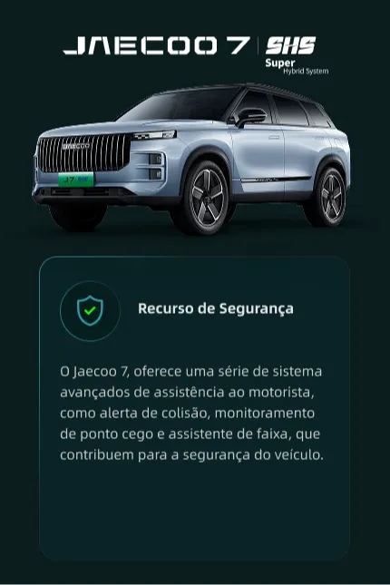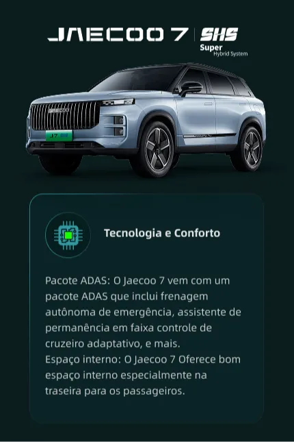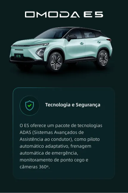 O sistema ADAS (Advanced Driver Assistance Systems) presente nos modelos Jaecoo e Omoda é um conjunto inteligente de assistências à condução que tornam sua experiência ao volante mais segura e confortável. Com recursos como frenagem automática de emergência, alerta de ponto cego, assistente de permanência em faixa e controle de cruzeiro adaptativo, o ADAS antecipa situações de risco e age para proteger você, seus passageiros e todos ao redor.